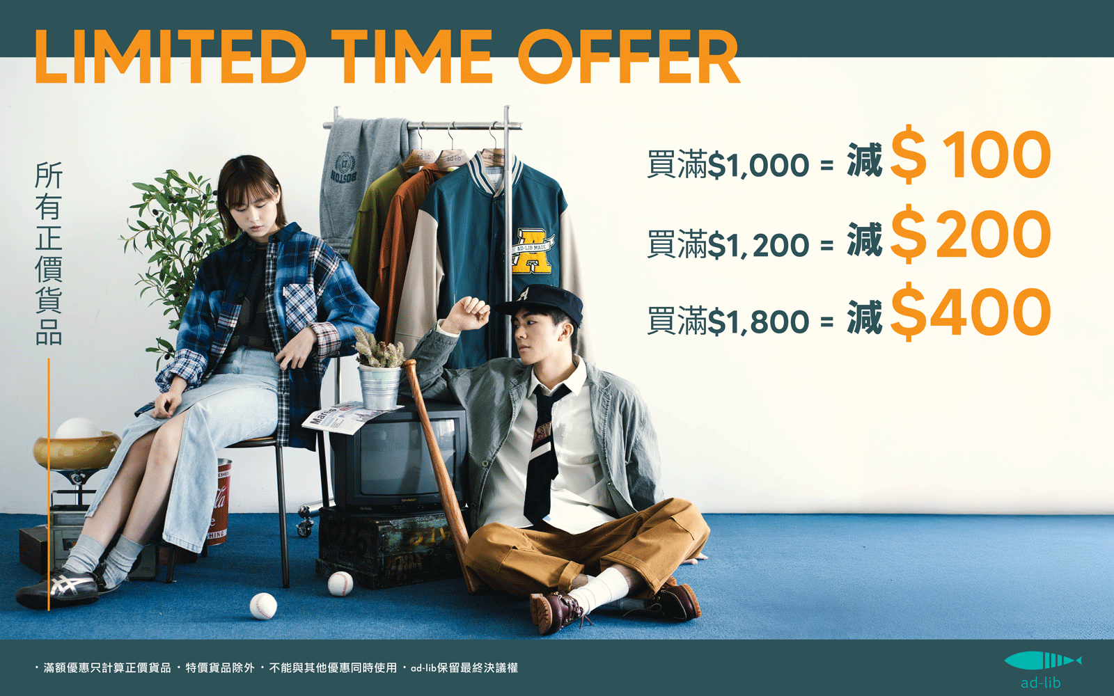 *All regular price items — Buy over $1,000 get $100 off; over $1,200 get $200 off; over $1,800 get $400 off