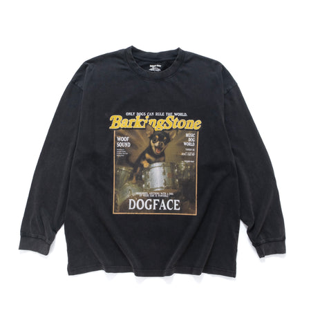 (ZT1818) Barking Dog Graphic Long Sleeve Washed Tee