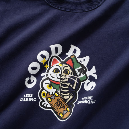 (ZW427) Lucky Skater Cat Graphic Embroidery Sweater