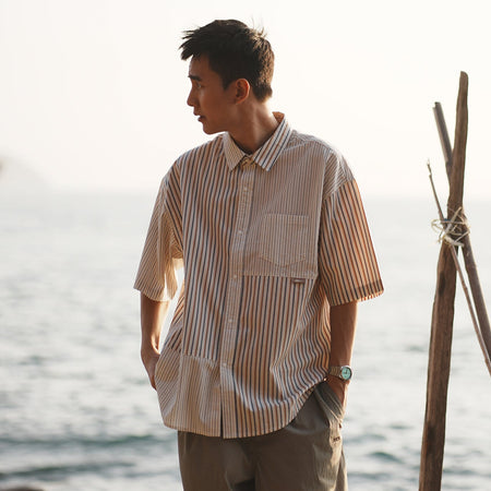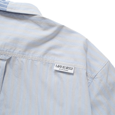 (ST451) 條紋拼布短袖恤衫