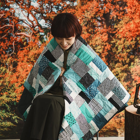 (YA483) 雙面可用圖案夾棉露營毯